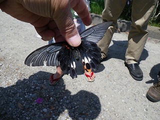 観察コース最後のツツジ植栽通りでは期待通りナガサキアゲハを捕らえ見て頂くことも出来ました。