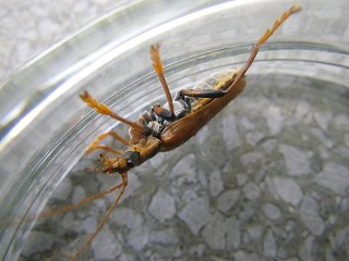 【左】柔らかな甲虫、ジョウカイボン   【中】クビキリギス   【右】クビキリギス