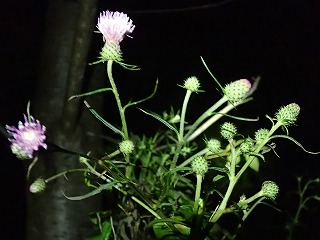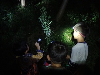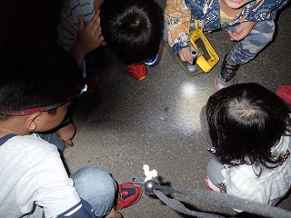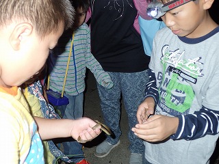 【左】明りに来た虫を観察       【右】なにかいるみたい