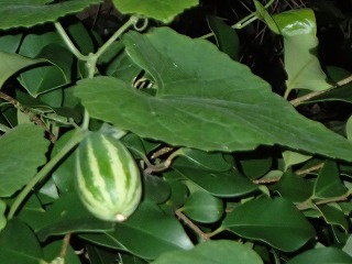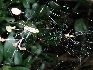 【左】カラスウリ           【中】イヌビワ           【右】ジョロウグモ。大が♂
