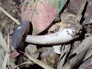 【左】コムラサキイッポンシメジ?           【右】キウロコタケ