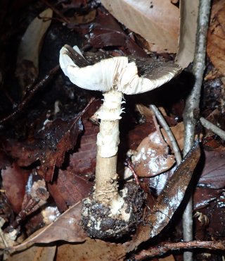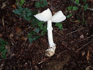 【左】キノコ休憩所の下で                                      【右】テングタケ(毒)