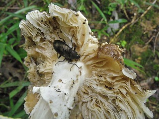 雨の心配がありましたがちょうど雨が上がり、暑くもなくキノコ観察には比較的良い日になりました。みんなでそぞろ歩きをしながら草原から森の中に入り探しました。キノコは草原、森の地面、木の幹などで見られ、期待通り、いろいろな種類のキノコに出会うことが出来ました。雨上がりが幸いしてコウガイビルやカタツムリにも出会うことが出来ました。(記・降幡)
