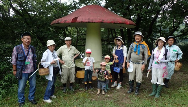 キノコは梅雨の季節と秋雨の頃たくさんの種類が発生するのでキノコの観察にはいい季節です。たくさん出るキノコの中から食べられて美味しいキノコを採集したいところですがそう安く問屋はおろしません。食べられるもの、毒があるもの、幻覚作用あるもの、薬になるものそんないろいろな夢があるのがキノコです。そんなキノコにに触れあい楽しさと夢を感じていただくよう観察会をしています。
