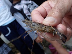 【左】ミゾレヌマエビ           【中】卵を抱いたテナガエビ           【右】アメンボ