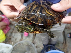 【左】ハグロトンボ          【中】ベンケイガニ           【右】アカミミガメ(外来)