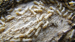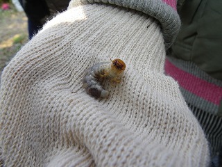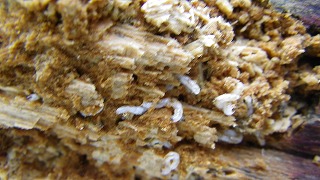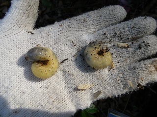 【左】ヤマトシロアリ   【中】   【右】朽ち木の下には沢山のカナブン(幼虫)