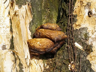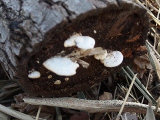 【左】キノコの仲間   【中】キノコの仲間   【右】シロアリに食べられた朽ち木