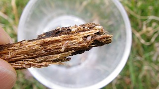 完全に朽ち木化した材は少なかったですが、めげずに朽ち木をドライバーや手でこじ開けて中から顔を出した虫たちをピンセットで引っ張り出しました。