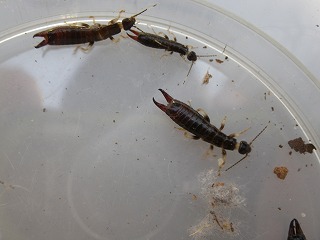 【左】ユミアシゴミムシダマシ(幼虫)   【中】キマワリ(幼虫)   【右】ハサミムシ(成虫)
