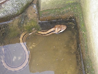 【左】ドングリ拾い 【中】排水溝に蛇がいるよ! 【右】シマヘビ