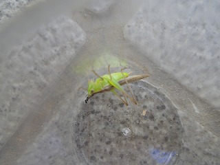 【左】オンブバッタ 緑 【中】オンブバッタ 茶 【右】ナナホシテントウムシ