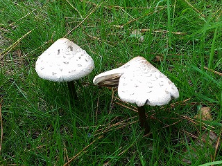 【左】 オニタケ 【中】 ハカワラタケ 【右】 オオシロカラカサタケ(毒)