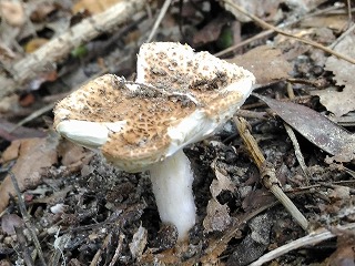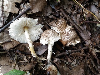 【左】 ウスキモリノカサ 【中】 コウヤクタケの仲間? 【右】 アカハツ