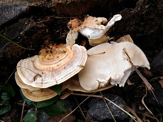 【左】 ツルタケ 【中】 アラゲカワラタケ 【右】 ヒイロタケ