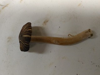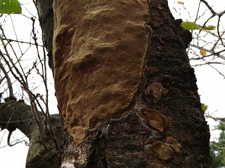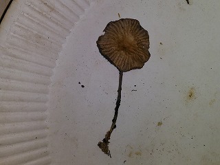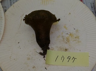 9月は雨が多く予想どおり色々なところにキノコが生えていた。子供達は目線が低く思いがけないところでもキノコを見つけ、親御さんも童心に返り熱心に図鑑を観ながら採集していた。昨年立派なコウヤクタケが付いていたサクラの木に今年も立派なコウヤクタケが付いていた。不思議なことに付近のサクラには付いていなかった。カレバキツネタケ通称オシッコタケが沢山見つかり皆大笑いであった。(記:吉房)