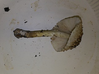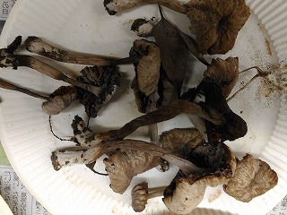 【左】 たくさんキノコを見つけました 【右】 ウズラタケ