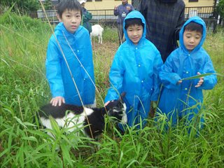 途中除草中のヤギと触れ合って、分かち合いをして終わりました。