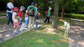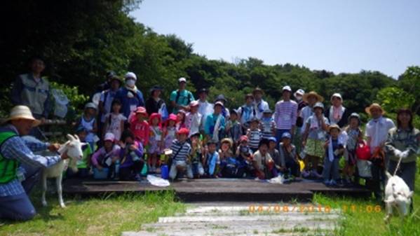 ビオトープにて集合写真(ヤギさんも一緒に)