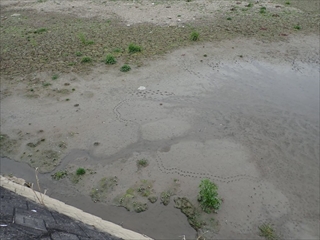 馬池の水が干上がっていたが、泥の上に残る足跡から水鳥の様子を知ることができた。参加した皆さんは神野さんが用意したプリントに記録したり、セットした望遠鏡を覗いたりして、大人も小さな子まで楽しく観察することができた。上空では今年もトンビが気持ちよさそうに上昇気流に乗って飛んでいる姿はとてもうらやましかった。 (記:吉房)