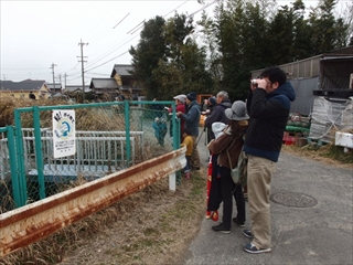 ツグミを見つけ「シベリアや中国北部から飛来(南下)してきて、中部山岳で東西に分かれてここへやって来た。昔は焼き鳥としてカスミ網で大量に捕っていたが、減少してしまい禁止された。」鳥の名前だけで無く鳥にまつわる神野さんの話に、皆熱心に耳を傾けていた。