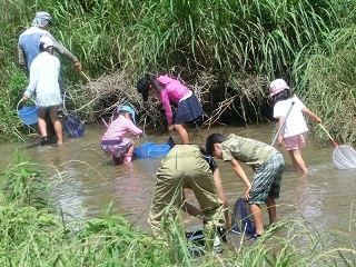 ”エビ゙が取れたよ。” ”魚が入ったよ。”と歓声があがり、大人も子供もみんな楽しめました。ハゼやエビがたくさん見つかりました。