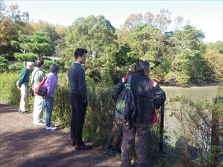 観察会後、ふと気がつくと公園内の池の水を抜いてかい取りをする準備が進められていました。大きなコイが背中を干してうごめく姿や、サギ、カモ類の鳥たちがサロンとばかりに集まる様子が観察されました。(記 竹内秀)