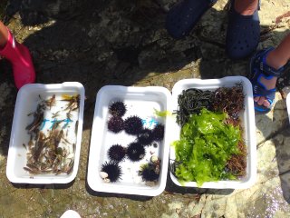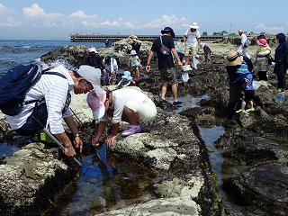 富具崎港駐車場に集合し、ホテル小野浦南側の磯で生き物の観察、採取を行いました。