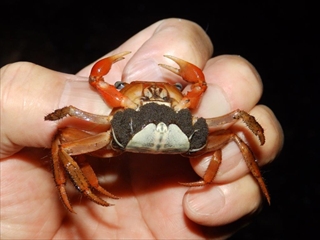 この間、アカテガニが放仔する海岸に行き、アカテガニが卵を抱いている様子などを観察しました。