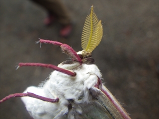 ストライプがとても美しいコントラストで、思わず見入ってしまいました。そして最後に登場したのがオオミズアオです。これはもう文句なく美しいとしか言えません。今回見つけることができた秋の七草は「葛」「萩」「ススキ」の3種類でした。 (伊藤伸 記)