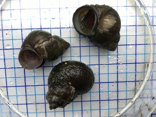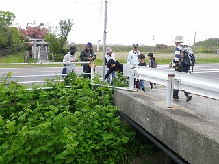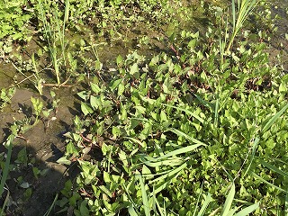 【左】耕作地地主への挨拶 【中】水田湿地のミゾソバ 【右】水田湿地のオオタニシ