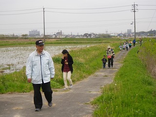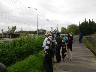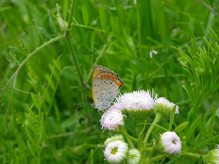 【左】ベニシジミ 【中】野草摘みの列が広がりました 【右】キツネノボタン (有毒)