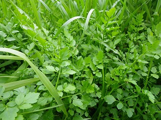 【左】野草摘み(シロバナタンポポ) 【右】セリ群落