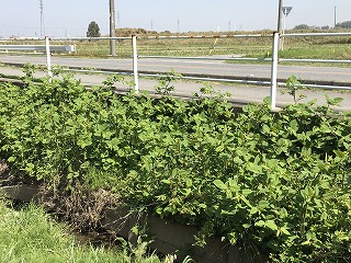 【左】青海市民センター 【中】観察路 【右】イタドリが大きく育っていました。