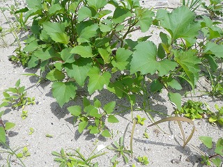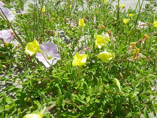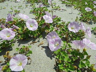 【左】ハマヒルガオ 【中】ハマヒルガオ 【右】コマツヨイグサ