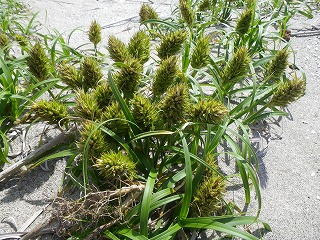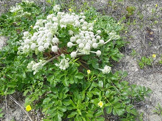 【左】ビロウドテンツキ 【中】ビロウドテンツキ(昨年開花) 【右】ハマボウフウ