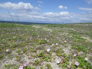 【左】カイトサーフイン 【中】ハマヒルガオ群生 【右】ハマヒルガオ群生