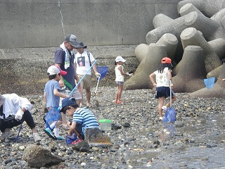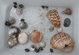【左】ヤドカリいっぱい採れた 【右】熱心に、これなあに