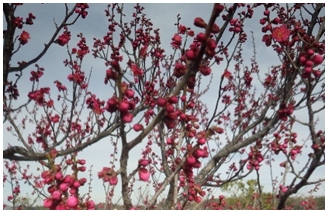 今年は暖冬、アオジク梅、甲州小梅、寒紅梅が咲き始めている梅林中で観察会を迎えた。子供たちは梅の花には興味をもたないが、大人たちはカメラを咲き始めた梅花にむけている。