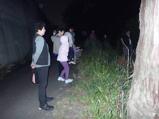 今年は、ミカンの花がやっと咲き出したものの、気温が日中は高くても朝晩はひえ、雨量も少ないためヒメボタルはでるだろうかと心配しながら観察会を迎えた。気温の低さも手伝ってかいつもより参加者は少なめ。