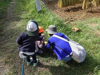 秋の里山には、たくさんの恵みがある。アケビやヤマイモ(ムカゴ)などの食べるとおいしい植物や、きれいに色づいたカラスウリの実、ノブドウや、実の中からアンモナイトが出てくる黒い実アオツヅラフジ、草原を飛び回るイナゴ類、コオロギ類、モンシロチョウやキチョウ、ヤマトシジミやウラギンシジミのチョウ類はみられたもののアキアカネなどトンボ類は確認できなかった。