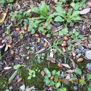 植物(菌類含む):イヌタデ、ミツバアケビ、ヨウシュヤマゴボウ、カラスウリ、ツリガネニンジン、スミレ、ヤマノイモ、ミゾソバ、ヌルデ、ムラサキシキブ、ノウタケ、オニフスベ、シュタケ、カンゾウタケ、クリ、センダン、ウメモドキ、サンショウ、コナラの実、ノブドウ、アオツヅラフジ、テングノカクレミノ、キツネノマゴ、オオバコ、カタバミ、ヒメジオン、セイタカアワダチソウ、アキノノゲシ、ヨシ、ススキ、アメリカセンダングサ、