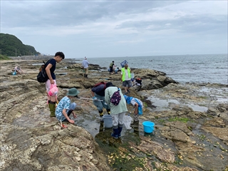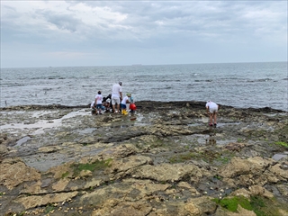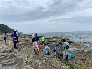 富具崎港駐車場に集合、担当の永田(孝)から今回の観察会の注意事項等の説明があり、その後南側の磯場に移動し磯場で生き物の観察、採取を始めました。