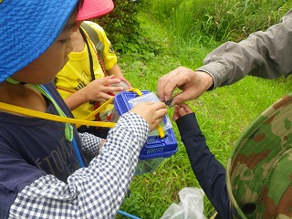 【左】捕った生きものはひとまず虫かごへ 【中】 【右】