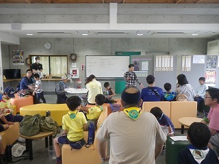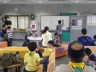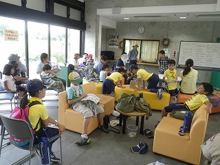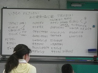 【左】分かち合い 【中】虫かごの中にいる生きものは何 【右】観察出来た夏の生きもの