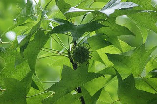 【左】プラタナスの葉 【中】プラタナスの果実が沢山落ちていました 【右】ドングリの発芽