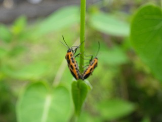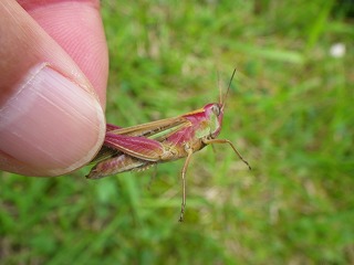 【左】カメムシの仲間 【中】一番沢山捕れたショウリョウバッタ 【右】寄生菌(エントモファガ・グリリ)に感染して殺されたショウリョウバッタ