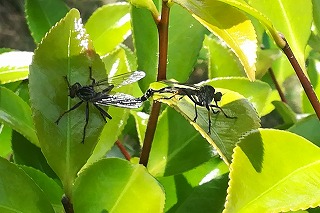 シオカラトンボ、ハラビロトンボ、ジョウカイボン、ムシヒキアブ、バッタの仲間