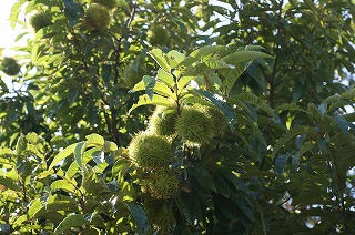 【左】ショウリョウバッタ、ホシササキリ 【中】ホタルガ 【右】クリの実