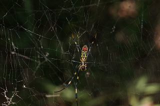 【左】イグチの仲間 【中】アミスギタケ 【右】林内で蜘蛛の巣を張るジョロウグモ